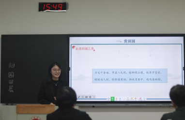 9名参赛选手选题丰富,涵盖古典诗词、现代散文解读与分析等领域,他们巧用情境导入、小组探究等方法,结合精心设计的课件与板书,生动诠释“以学生为中心”的教学实践理念,展现了选手扎实的专业功底。